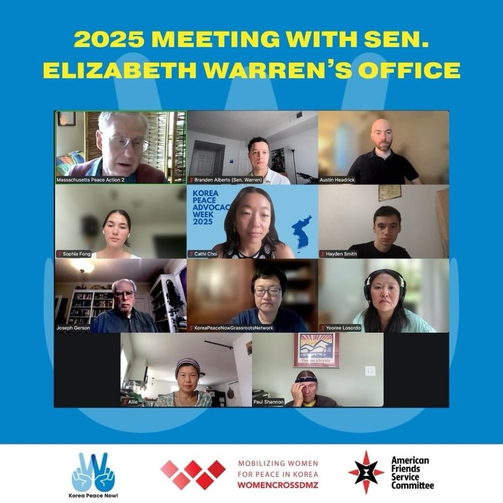 On August 28, KPNGN Members and allied peace activists met with Sen. Elizabeth Warren’s office to advocate for new language in the National Defense Authorization Act, the national military spending bill. In July, the Senate Armed Services Committee passed a version of the bill that would prohibit military spending on withdrawing U.S. troops from South Korea; this is the first time in five years that the NDAA includes this ban. The bill also contains a new ban for the first time prohibiting the transfer of wartime operational control (OPCON) over troops in South Korea unless in U.S. national security interest. Some highlights from constituents and local peace leaders below: