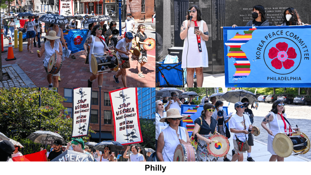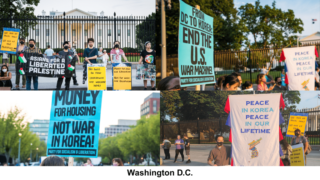 From Washington D.C. to Philly to Los Angeles, KPNGN members joined rallies for National Liberation Day on Friday, August 15. On the 80th anniversary of division, we called for an end to the ongoing Korean War alongside dozens of partner organizations. We also called to halt Ulchi Freedom Shield war drills. These massive war drills escalate tensions, renew the threat of war, and exact serious tolls on civilian lives. Thank you to Sheen Kim, a Nodutdol and KPNGN member, for co-organizing the DC rally.