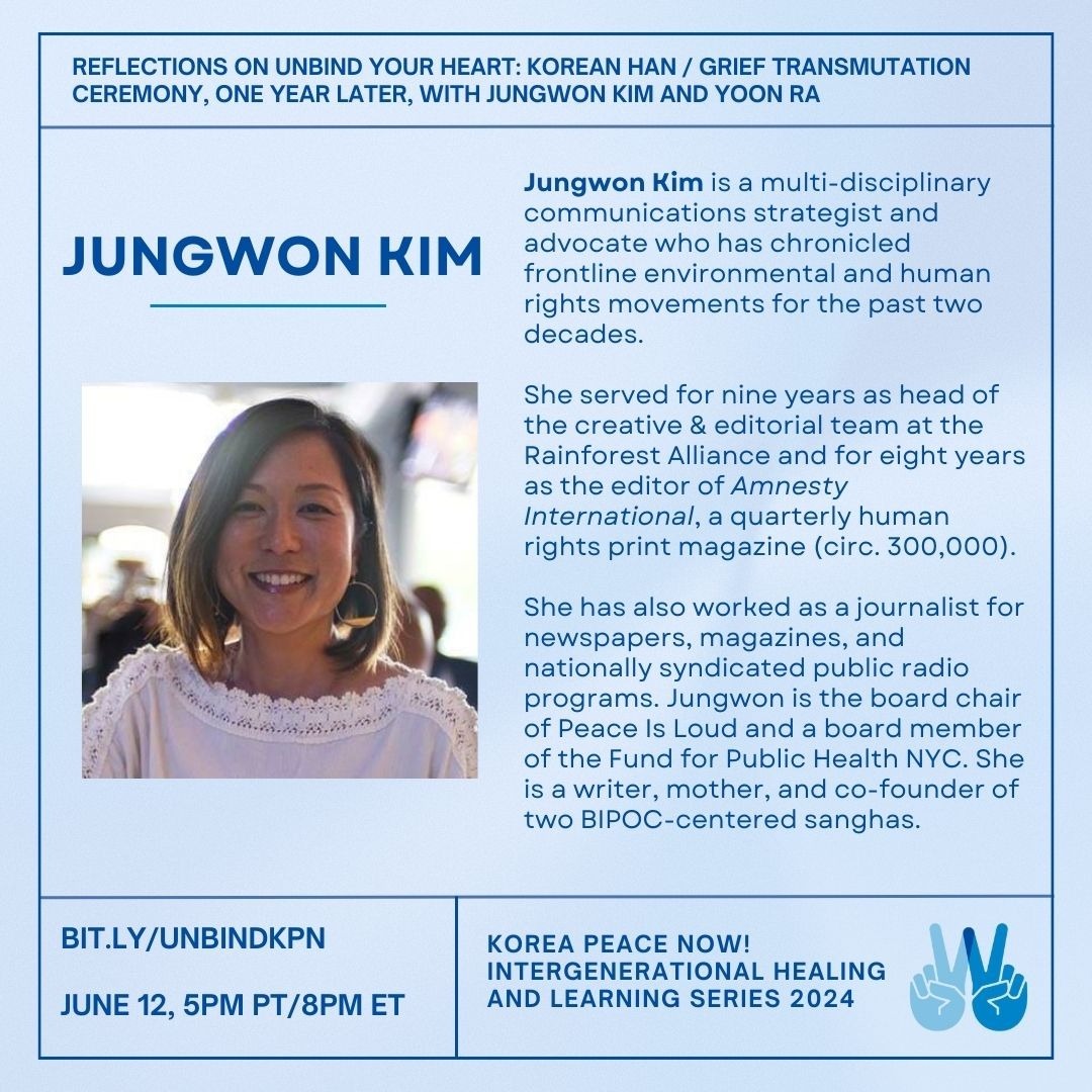📣 JOIN US: Reflections on Unbind Your Heart: Korean Han / Grief Transmutation Ceremony, One Year Later, this Wednesday, June 12, at 5pm PT/8pm PT. Register here!