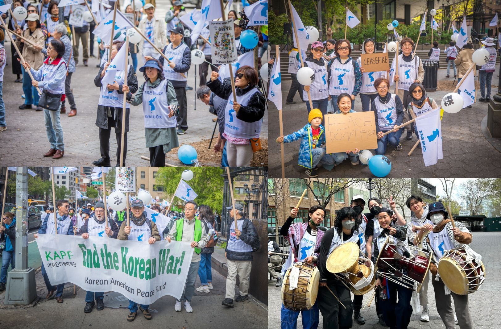 Thank you to everyone who came out to the Korean American March for Peace in Korea on Saturday, April 27! We rallied, marched, and gathered to demand an end to the U.S.-South Korea joint war drills and for a peace agreement between the United States and North Korea at Dam Hammarskjold Plaza in New York City. We met up with fellow organizers at the Korean American Peace Fund, Korean Council for Reunification and Cooperation of Greater New York, Korea Peace Now!, 6.15 U.S. Committee for Reunification of Korea, and Heungsadahn NY. Check out photos of the march below, and see more photos here!