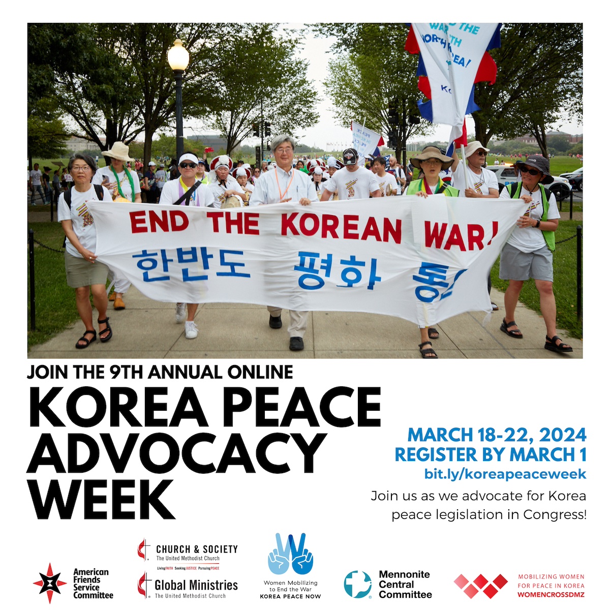 This year’s Korea Peace Advocacy Week is being organized by American Friends Service Committee, Mennonite Central Committee, Korea Peace Now!, Church & Society and Global Ministries of The United Methodist Church, and Women Cross DMZ.