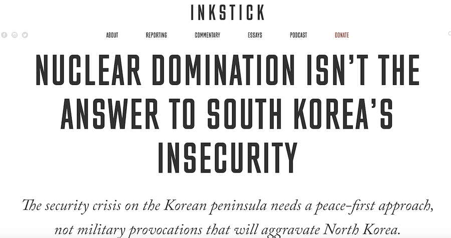 Nuclear Domination Isn’t the Answer to South Korea’s Insecurity [Colleen Moore’s op-ed in Inkstick Media, 5/2/23]