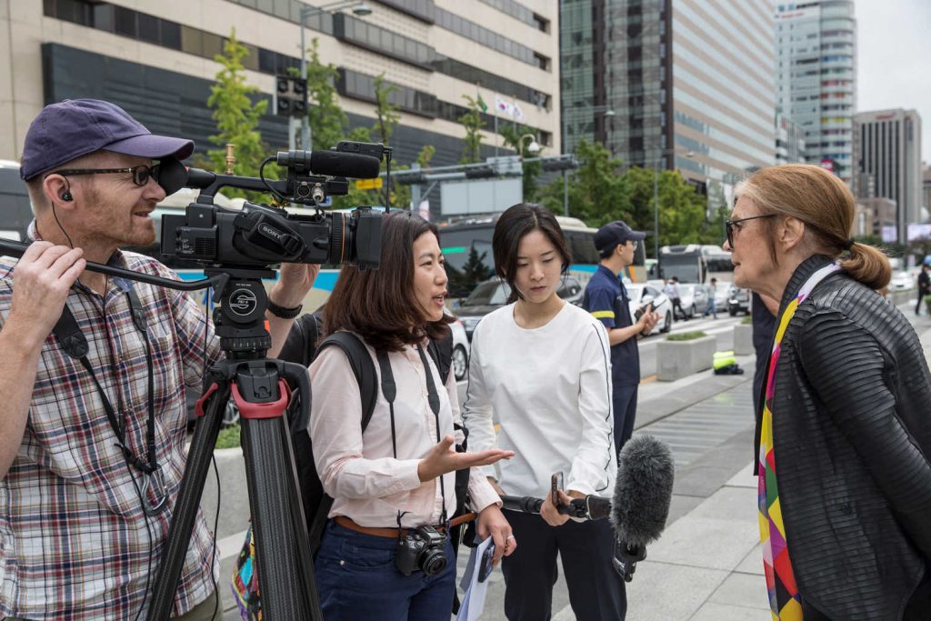 “…[R]ight now, there are very few women involved in the official Korea peace process,” said Gloria Steinem. “Yet there are tens of thousands of women — here on the peninsula and around the world — who are already working together to support this historic peace process. We know that unless we act, from taking to the streets to lobbying members of Congress and ourselves crossing the DMZ, there will be no durable, lasting peace. Peace is like a tree. It does not grow from the top down, it grows from the bottom up.”