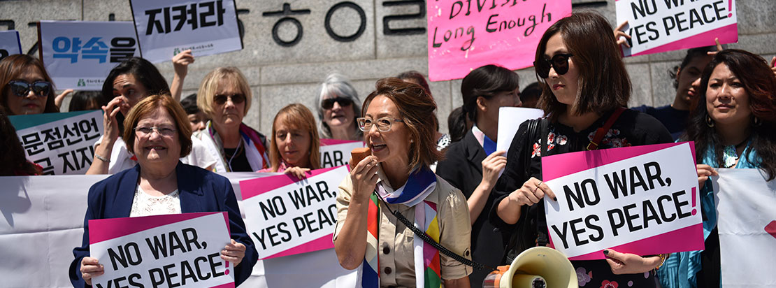 Korea Peace Now! is a campaign to educate, organize, and advocate for an end to war and the establishment of lasting peace on the Korean Peninsula. Originally launched as a global campaign in March 2019 by four women’s peace groups — Women Cross DMZ, the Nobel Women’s Initiative, Women’s International League for Peace and Freedom (WILPF), and the Korean Women’s Movement for Peace — Korea Peace Now! is now primarily a U.S.-based movement for peace in Korea led by Women Cross DMZ.